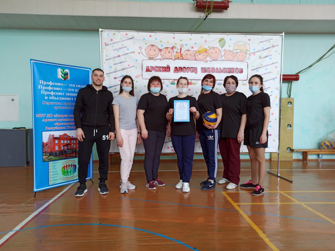 Сегодня женская команда учителей нашей школы по волейболу заняла 1 место в зональных соревнованиях среди членов профсоюза учреждений образования Арского муниципального района РТ.Бүген безнең мәктәп укытучылары хатын-кызлар командасы волейбол буенча Татарстан Республикасы Арча муниципаль районы мәгариф учреждениеләре профсоюзы әгъзалары арасында үткәрелгән зона ярышларында 1 урынны яулады