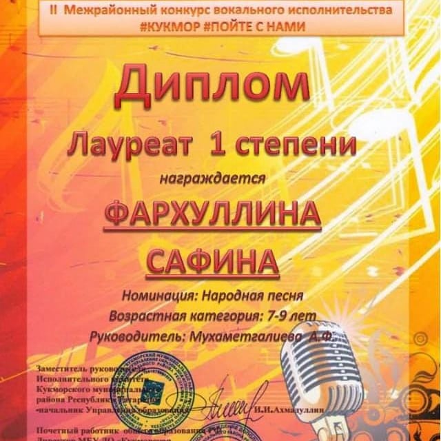 Поздравляем лауреатов и дипломантов межрайонного конкурса вокального исполнительства #Кукмор #Пойте с намиФархуллину С.