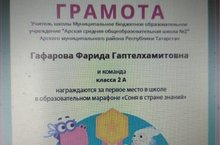 Дистанционное обучение и воспитание 14.05.2020 Ученики 2а класса вместе с учителем Гафровой Ф.Г. - победители в образовательном марафоне "Соня в стране знаний".