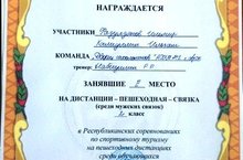 10-12 июня в Балтасях состоялись Республиканские соревнования по спортивному туризму на пешеходных дистанциях среди обучающихся. Фаулзянов Ильмир (8а класс) и Халиуллин Ильхам (8а класс) на дистанции пешеходная связка заняли II место.
