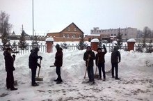 Уборка школьной территории 18.01.2016 После обильных снегопадов обучающиеся очистили территорию школы от снега.