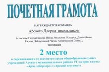 9 января прошли соревнования по шахматам среди общеобразовательных учреждений Арского муниципального района РТ на приз газеты "Арский вестник". Команда Арского Дворца школьников, в составе которой было три обучающихся нашей школы- Галяуетдинов Нияз, Фазлыев Ильдус, Зайнуллина Чачка, заняла 2 место.