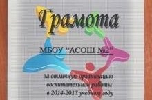 Результаты работы школы за 2014-15 учебный год 28.08.2015 Школа награждена грамотой за отличную организацию воспитательной работы в 2014-2015 учебном году.
