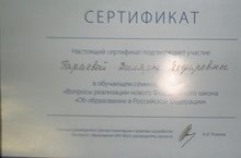 Гараева Д.Я. приняла участие в обучающем семинаре для работников образовательных организаций по вопросам, связанным с реализацией Федерального закона от 29 декабря 2012г. №273-ФЗ "Об образовании в Российской Федерации", проводимого МОиН РФ с участием ГАОУ ВПО "Национальный исследовательский университет "Высшая школа экономики".