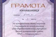 Спартакиада по легкой атлетике 13.01.2014 11 января в ДЮСШ "Арча" прошел муниципальный этап I школьной Спартакиады по легкой атлетике среди сборных команд общеобразовательных учреждений. Команда АСОШ №2 (тренеры Набиуллин Р.Р., Юсупов Р.Р.) заняла I место. Поздравляем с победой!