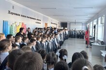 Дүшәмбе көнне безнең мәктәптә флаглар чыгару һәм гимннар башкару белән атналык традицион линейка узды.