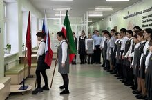 Новая учебная неделя началась с традиционной торжественной линейки, выноса государственного флага и исполнения гимна Российской Федерации и Республики Татарстан. Но