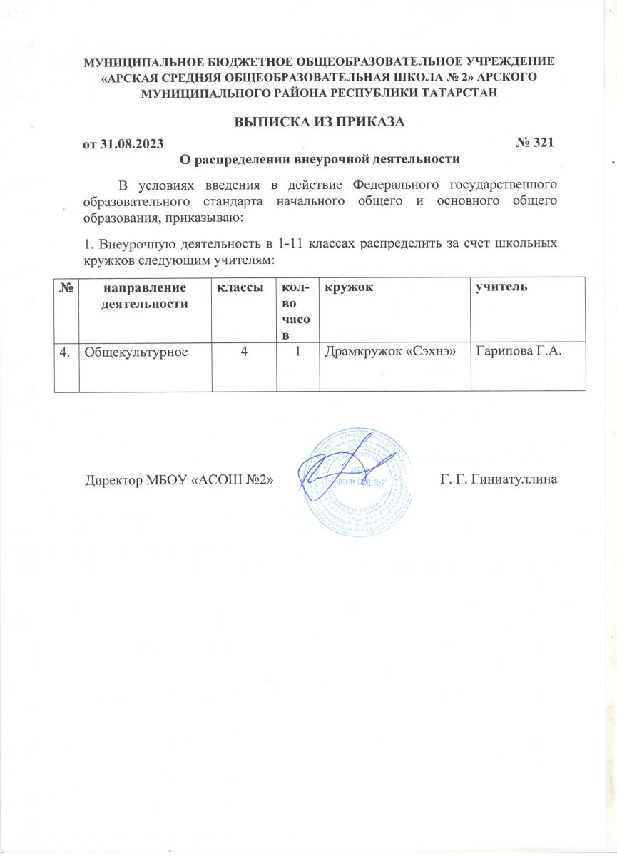 Выписка из приказа о создании драматического кружка