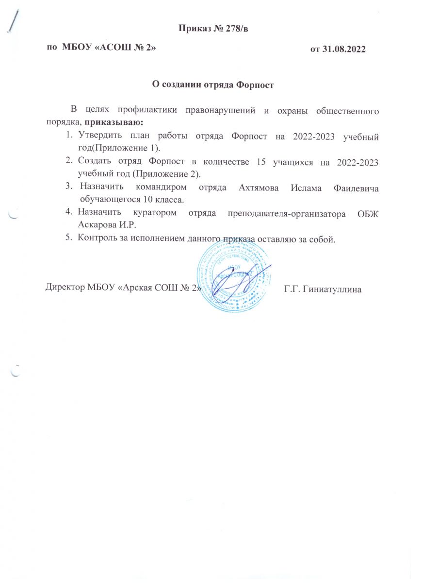 Приказ о создании отряда Форпост