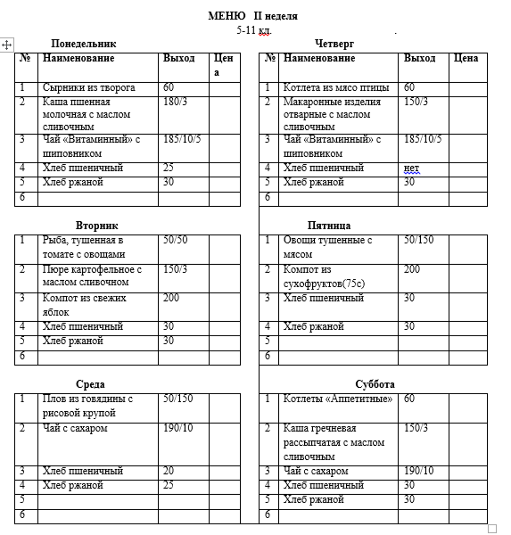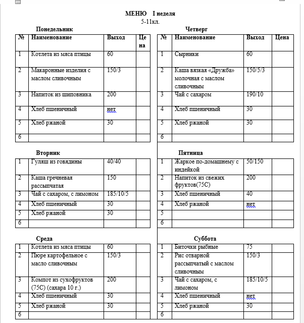 Меню 5-11 классы