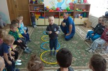 Занятия по физической культуре проходит очень интересно.Сегодня ребята младшей группы отправились в гости к зайчику. Они учились ходить и бегать не наталкиваясь друг на друга, учились прыгать в длину с места на двух ногах.