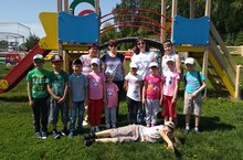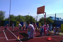Сегодня детей ожидала большая и интерессная программа: мероприятие посвященное Дню защиты детей, где они встретились с мультгероем свинкой Пеппи,конкурс рисунков на асфальте, флешмоб.