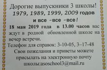 18 мая в 13.00 в школе состоится вечер встречи выпускников.Телефон для справок: 3-10-05; 3- 17-48.