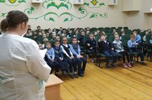 В школе проходят лекции «Давай поговорим». Лекторий начался с демонстрации видеоролика «Осторожно! Грипп!». Медсестра рассказала о способах профилактики и мерах защиты от гриппа и ОРВИ. В заключение был продемонстрирован мультфильм «Город гриппа».