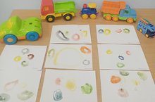 Мы сегодня с детьми второй младшей группы рисовали разноцветные колёса. Учили рисовать предметы круглой формы слитным неотрывным движением кисти. Закрепляли умение промывать кисть и промакивать ворс промытой кисти о салфетку.