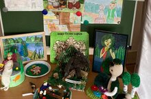 Балалар бакчасында күргәзмә 28.04.2022 Г.Тукайның туган көне уңаеннан балалар бакчасында кул эшләнмәләреннән һәм рәсемнәрдән күргәзмә оештырылды.