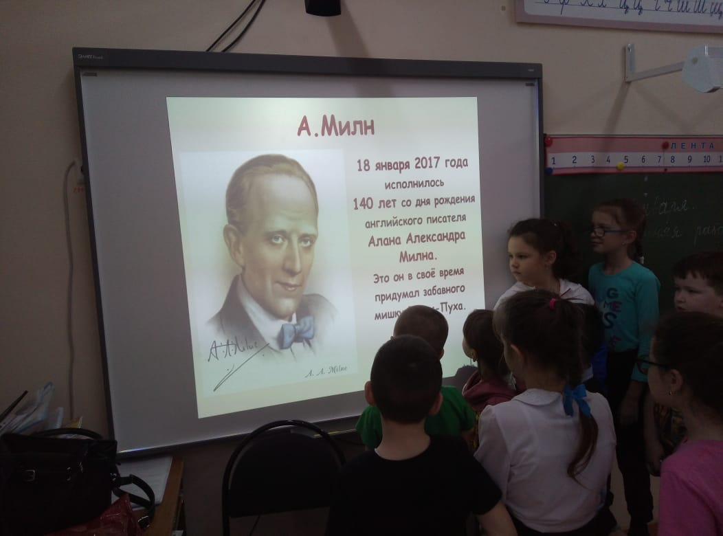 Ребята познакомились с жизнью и творчеством писателя. С особым интересом учащиеся слушали об истории написания произведения о весёлом, забавном и полюбившимся миллионам читателей медвежонке Винни Пух.