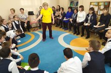 В рамках прохождения слушателями Республиканских курсов повышения квалификации учителей английского языка по программе"Методы и приемы по формированию коммуникативной среды на уроках английского языка" учитель английского языка Сабирова Г.А. и учитель географии Хусаинова Н.Г. провели интегрированный урок по английскому языку и географии "А wonderful world" в 5а классе.