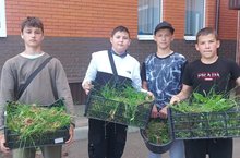 Четырнадцатый день работы лагеря труда и отдыха начался с утренней линейки и флешмоба. После завтрака ребята вышли на уборку пришкольной территории. Дружно поливали молодые деревья и выкорчевали крупные сорняки. После вкусного обеда ребята разошлись по домам.