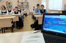 Ребята посмотрели шесть тематических видеосюжетов: великая культура, великие открытия, высокие технологии, великие победы, особая миссия, великая страна. После просмотра видеоролика на экран выводился основной вывод о роли России в мире по конкретному аспекту.