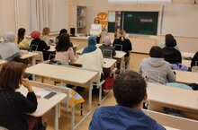 Ребятам рассказали о специальностях, направлениях и об условиях поступления.18 ноябрь көнне 9-11 сыйныф укучыларының Идел буе физик культура, спорт һәм туризм университеты вәкилләре белән очрашуы.
