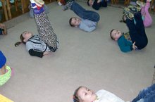 2. Кечкенә тупны бер кул б-н ату (3 м ара), ике кул б-н тоту, мүкәйләү, предметлар арасыннан аяк очларында йөрү тигезлек саклау күнекмәләрен үстерү.