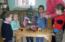 Максат: Балаларга ёлка уенчыкларын тасвирлап әйтергә өйрәтү, төсләр турындагы белемнәрне ныгыту. Чыршы бизәргә өйрәтү. -