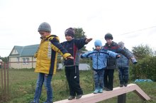 Максат: Балаларда игътибарлылык, җитезлек, кыюлык тәрбияләү. Атлап йөрү, сикерү, йөгерү күнекмәләрен үстерү. Тигезлекне саклап, бүрәнәдән төз йөрергә, гәүдә тигезлеген сакларга өйрәтү.Уеннарда мөстәкыйльлелек, уен кагыйдәләренә буйсынучанлык, куңел күтәренкелеге тәрбияләү.