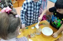 Зурлар һәм мәктәпкә әзерлек төркеме белән математика шөгыленнән сыек матдәләрне үлчәргә өйрәндек, эш дәфтәрләрендә бирелгән биремнэрне үтәделәр.
