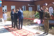 Һәйкәлне ачу өчен кызыл тасманы сугыш ветераны Кәримов Хәбир абый кисте. 08.05.2015