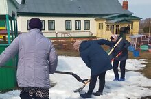 Бүген өмәгә чыктык.Бакчабыз территориясендәге карларны тараттык.