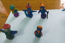 Цель : Закреплять умение лепить из целого куска глины фигурки по мотивам народных игрушек ,передавая их характер ,используя разнообразные приемы лепки (оттягивание ,прищипывание,сглаживание и др.)Развивать эстетическое восприятие.