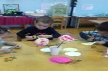 Максат: кәгазьдән төрле симметрияле предметлар кисеп алырга өйрәтү; пөхтә итеп ябыштыру күнекмәсен ныгыту; вак детальләр, өстәмә бизәкләр белән тулыландырасы килү теләге булдыру. -