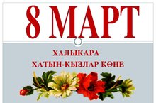 Кадерле хатын-кызлар - әниләр,әбиләр, апалар, сеңелләр! Сезне чынкүңелдән 8 Март бәйрәме белән котлыйбыз. Сезгә иң изге теләкләр телибез, якыннарыгызның игелеген күреп яшәргә насыйп итсен сезгә Ходай.Салкын, озын кышлардан соң килгән бу беренче Яз бәйрәме, иң гүзәл бәйрәмнәрнең берсе. Бу бәйрәм сезгә тормыш яме, яшәү көче өстәсен. Бәхет нурында коенып, назга күмелеп, сөеп-сөелеп яшәгез.Бәйрәм белән!!!