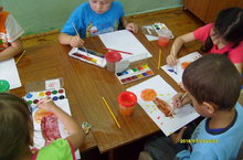 1) закреплять умение рисовать простым карандашом контур и закрашивать красками;