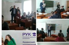 Укучыларыбыз алдында Казан кооператив институтының тәрбия эшләре буенча проректоры, доцент, икътисад фәннәре кандидаты Нуреев Р.Ф. чыгыш ясады, укучыларның сорауларына җавап бирде.
