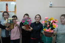 "Оста куллар" түгәрәгендә укучылар Идиятуллина Р.Т. җитәкчелегендә кәгазьдән бик матур чәчәкләр ясыйлар.