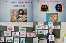 "Туган телем сагында" акциясе кысаларында "Халкыбызның милли бизәкләре" дигән чара үтте. Татар халкы элек-электән бик матур киенергә яраткан.Чигелгән түбәтәйләре, берсеннән-берсе матур калфаклары, бизәкле читекләре белән дан тотканнар. Татар хатын-кызлары милли бизәкләр белән чигелгән алъяпкычлар кигәннәр. Үзенчәлекле матур күлмәкләрне, камзулларны татар халкы аеруча яратып кигән.Татар халкының аяк киемнәре күп төрле. Милли киемнәрне истә тотып,аны киләчәк буыннарга җиткерү - безнең бурыч. Яхшыны яманнан аера белгән,матурлыкны,гүзәллекне яраткан,үзләренең гореф - гадәтләрен ,йолаларын онытмаган балалар киләчәктә дә үз юлларын табарлар.Балалар белән камзуллар,калфаклар, читекләр,алъяпкычлар ,түбәтәй турында сөйләштек. Соңыннан балалар белән милли бизәкләрне рәсемгә дә төшерделәр.