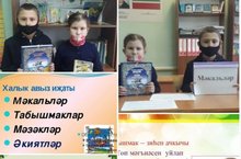 3,4г класс укучылары белән"Газиз туган телем"темасына класс сәгате үткәрелде.Татар халык авыз иҗатына күзәтү ясалды.