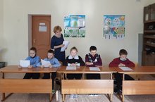 1б-4б класс укучылары "Без - туган телнен дуслары" дигэн викторина уенын уйнадлар. Балаларнын уз теллэрен белуен, дорес сойлэу сэлэтлэрен устеру остендэ эшлэдләр