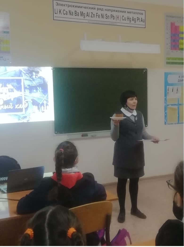 В 5,6 классах в память о стойкости духа советского народа в годы Великой Отечественной войны и о мужестве и трагедии мирного населения блокадного Ленинграда Идиятуллина Р.Т. провела урок памяти "Блокадный хлеб". -