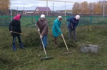 Бүген бездә өмә булды.Тирә-як мәйданны тырмалап җыештырдык.Участогыбыз чиста булып торсын өчен зур көч куйдык.