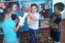 Кечкенәләр төркемендә хезмәт тәрбиясе. 11.10.2016 Баланың үсешендә шәхес булып формалашуында хезмәт тәрбиясенә зур урын бирелә. Программада(яшь ягыннан мөмкинлекләреннән искә алып) хезмәткә омтылыш, иң гади эшчәнлек күнкемәләре, эш сөючәнлек сыйфатлары тәрбияләү бурычы куела. Аларны ике юл белән: өлкәннәр хезмәте белән таныштыру аша һәм баланың үзен җиңелрәк хезмәткә турыдан-туры катнаштыру юлы белән хәл итү күздә тотыла.Кечкенәдән өлкәннәр хезмәтенә хөрмәт уен аша формалаша. Без анны шөгыльләр вакытында уен аша балаларга җиткерәбез. Шулай ук рольле-сюжетлы уеннар аша балаларда хезмәт тәрбиясен бирү бик уңай юнәлеш ала.