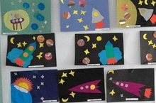 Космонавтика көненә багышлап ясалган кул эше. 12.04.2016 Уртанчылар төркеме балалары белән авиация һәм космонавтика көненә багышлап,кисеп-ябыштыру эшчәнлегеннән кул эше эшләдек.Эшләрне күргәзмәгә урнаштырдык.