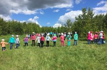 Мәктәп яны тәҗрибә участогында эшләрне тәмамлагач балалар белән урманда үзеңне ничек тотарга кирәклеге турында тәрбиячеләр файдалы беседа үткәрделәр.