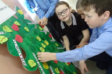 Халыкара РӘХМӘТ көне уңаеннан мәктәбебездә акция үтте. Элеге акциядә башлангыч класс укучылары да бик теләп катнашты. Агачыбыз тылсымлы сүзләргә баеды.