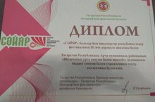 Мәктәбебезнең театр коллективы Татарсан Республикасы мәгариф һәм фән министрлыгы тарафыннан үткәрелгән "Сәйяр" балалар һәм яшүсмерләрнең республика театр фестивалендә уңышлы чыгыш ясап III дәрәҗәле диплом белән бүләкләнделәр. Театр коллективы җитәкчесе Вильданова Г.Ш .га, аның укучыларына яңадан-яңа иҗат уңышлары юлдаш булсын!