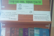 Китапханәче Хашимова Л.Ф., татар теле һәм әдәбияты укытучысы Сабитова Т.Ә. тарафыннан "Туган тел" көне уңаеннан күргәзмә оештырылды