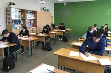 Бүген 11 класс укучылары сайлау фәннәре: химия, биология, физика, информатикадан пробный имтиханнар эшлиләр.