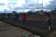 Мәктәп бакчасында язгы эшләр дәвам итә. Бүген коллектив түтәлләр ясау эшенә кереште.